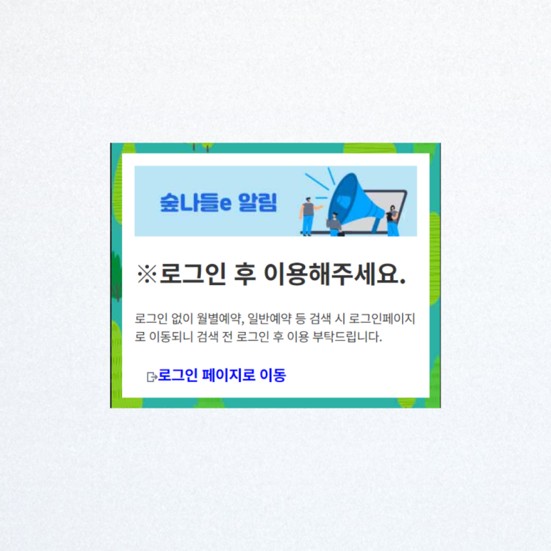 일단 포털사이트에 '국립자연휴양림 예약' 이라고 검색을 하시면 맨 위에 '숲나들e' 홈페이지로 들어가시기 바랍니다.