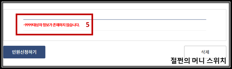 최종 발급 화면으로 넘어가지 않고, 이렇게 '-9999대상자 정보가 존재하지 않습니다.'라고 표시된다면