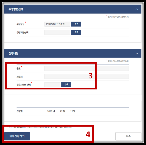 만약, 제출처가 주민센터라고 한다면 주민센터에 방문하여 발급 및 신청을 모두 처리하시는 게 편리하니, 제출처에 따라 선택하시면 됩니다.