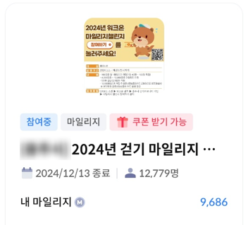 스마트폰을 이용하여 걸음수와 소비 칼로리, 이동거리와 시간 등을 측정할 수 있는 어플로, 첼린지를 참여하여 목표 걸음수를 달성하면 경품을 받을 수 있는 앱입니다. 기업체와 관공서에서 매월 다양한 챌린지를 진행하며 간단한 회원가입 우 이용할 수 있으며 대부분의 혜택은 상품권 또는 챌린지의 내용에 따라 다이어트라면, 식판 등으로 다양하게 받을 수 있습니다. 다만, 수량 대비 신청자가 많을 경우에는 지급받지 못하는 경우도 많다는 점은 알고 계셔야 합니다.