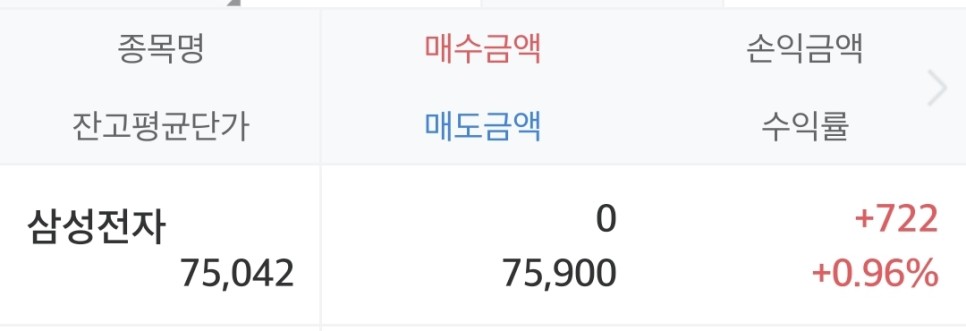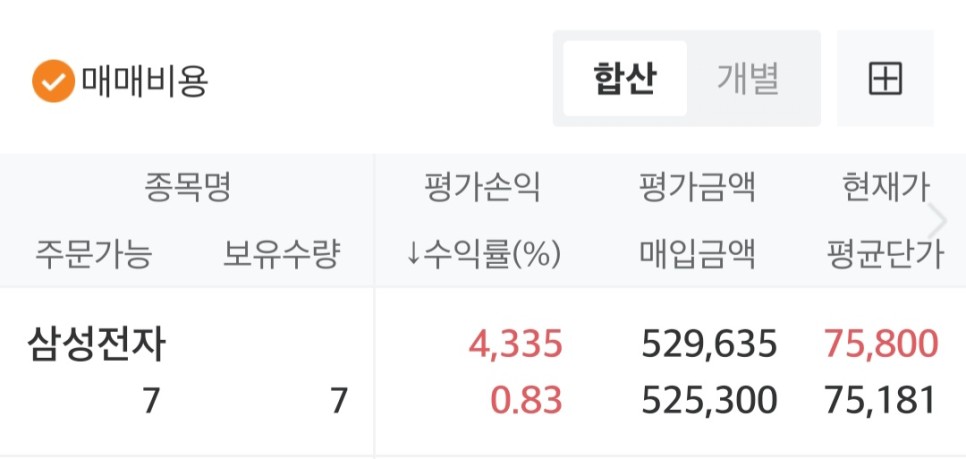 아무튼 이 글을 위해 급하게 6주를 더 매수해서, 저의 삼성전자는 7주, 평균단가는 75,181원이 되었어요.