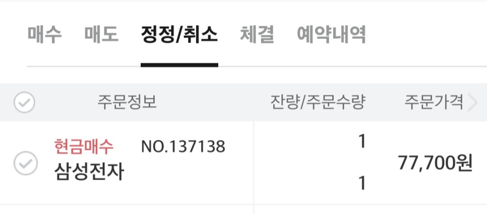 이렇게 진행하게 된다면 삼성전자 주식 1주를 '매수'하게 돼요.