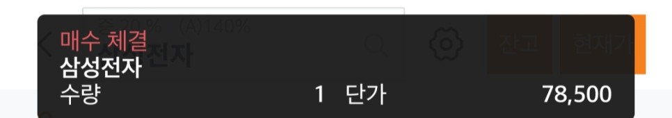 이날은 삼성전자가 간만에 좋은 흐름을 보여줘서, 제가 1틱 낮춰서 올려놨음에도 계속 올라가서 저는 결국 급하게 78,500원에 매수를 했습니다ㅋㅋㅋ