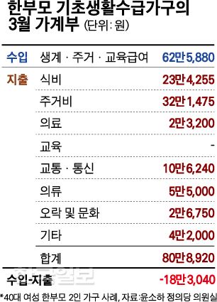 이때, 지원금은 해당 가구의 소득을 제외한 부분을 보충해 주게 돼요.